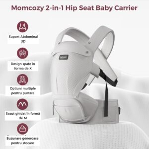 Marsupiu Wrap Sling cu suport spate Ergonomic 3.5 – 22 kg Babe-Toddler – Gri MOMCOZY